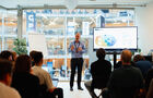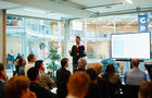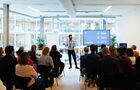 L'espace ouvert du rez-de-chaussée est utilisé pour des présentations plus importantes, des journées d'inspiration ou des débats. Parfois, l'Open Space donne le coup d'envoi d'un événement après lequel les participants se dirigent vers les différentes salles de réunion.