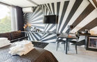 Le lieu peut accueillir jusqu'à 15 personnes et dispose de cinq chambres spacieuses avec de luxueux lits à sommier tapissier et salles de bain privatives. Vous y trouverez également une grande cuisine, une salle à manger, un bar, un salon et une salle séparée avec projecteur, idéale pour les présentations ou les séances de team building.