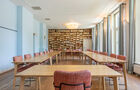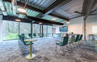 Notre salle de conférence Maitland est située au cœur du domaine. Ce bâtiment circulaire unique, doté de baies vitrées, laisse entrer une abondante lumière naturelle et préserve ainsi le lien avec la nature. La tribune peut accueillir jusqu'à 275 personnes, mais peut également être rabattue pour agrandir l'espace.