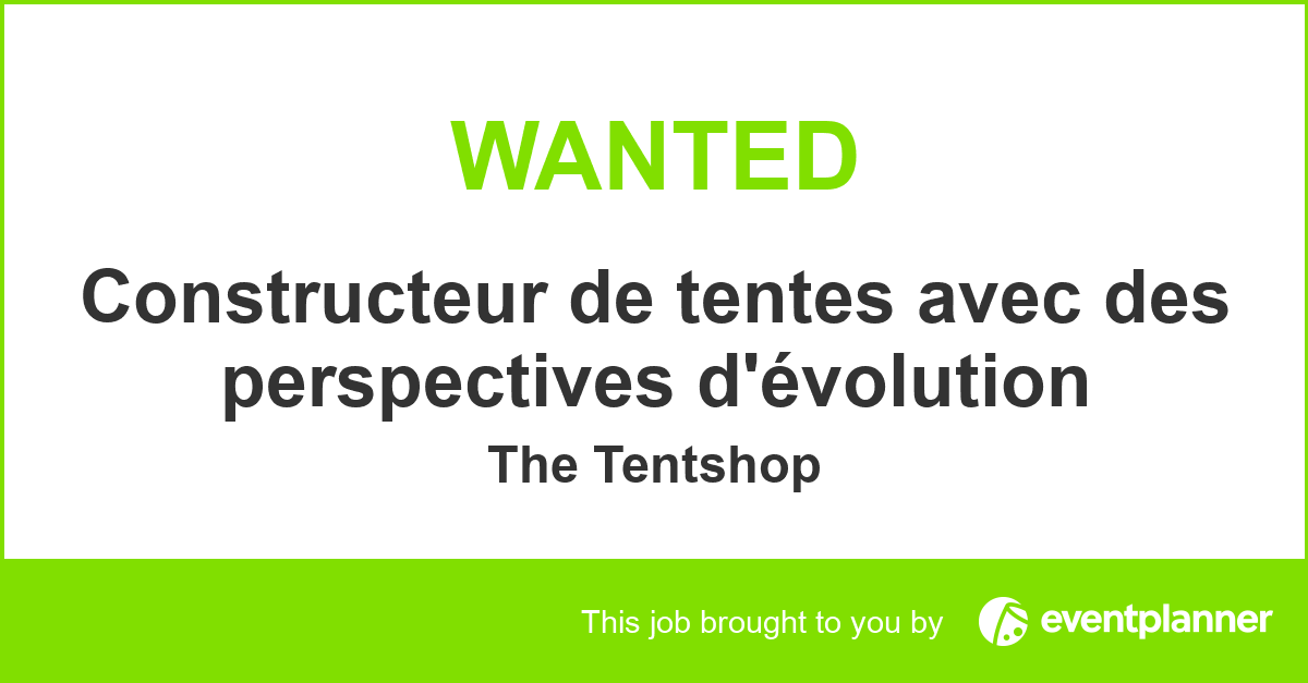 Tentshop est une entreprise en pleine croissance spécialisée dans la location de tentes et d'accessoires. Afin de renforcer notre équipe, nous recherchons un monteur de tentes motivé, ambitieux et souhaitant devenir chef d'équipe.