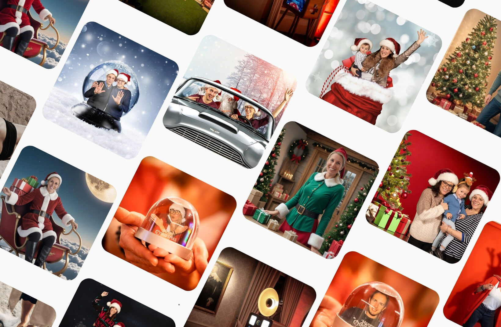 Notre photomaton IA révolutionne la photo classique. En quelques secondes, vos visiteurs se transforment en Père Noël, en ange de neige ou en lutin dans un monde hivernal virtuel. Ultra rapide et précis.