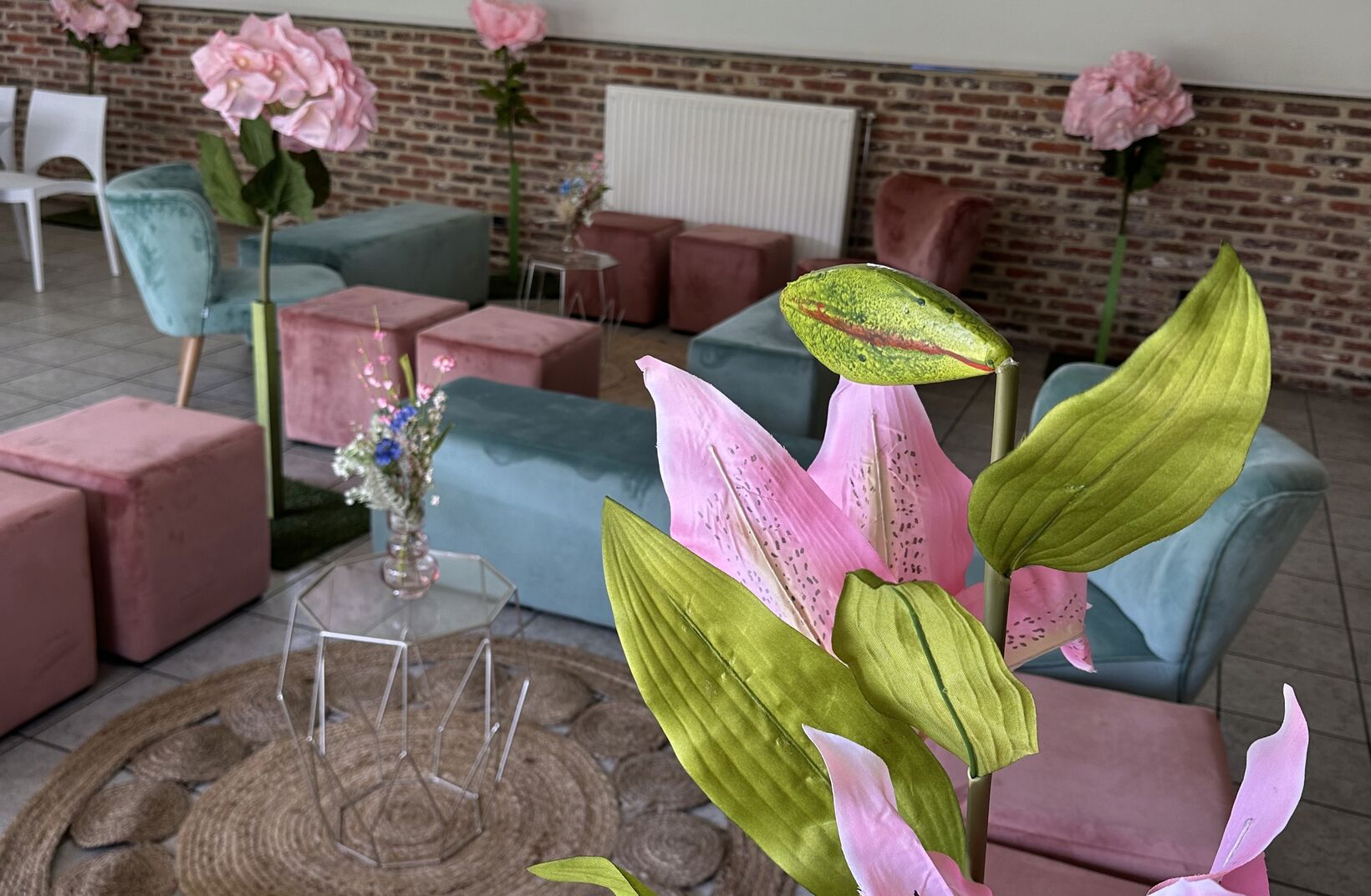 Nous pouvons également fournir tout sur place, du mobilier et de la décoration aux plantes, en passant par le son et la lumière.
