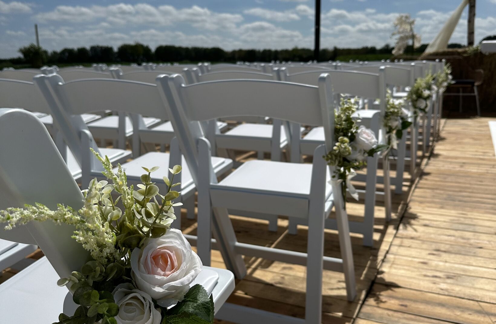 En plus de nos salles de réception, nous proposons également la possibilité de se marier sur place sous nos tentes.